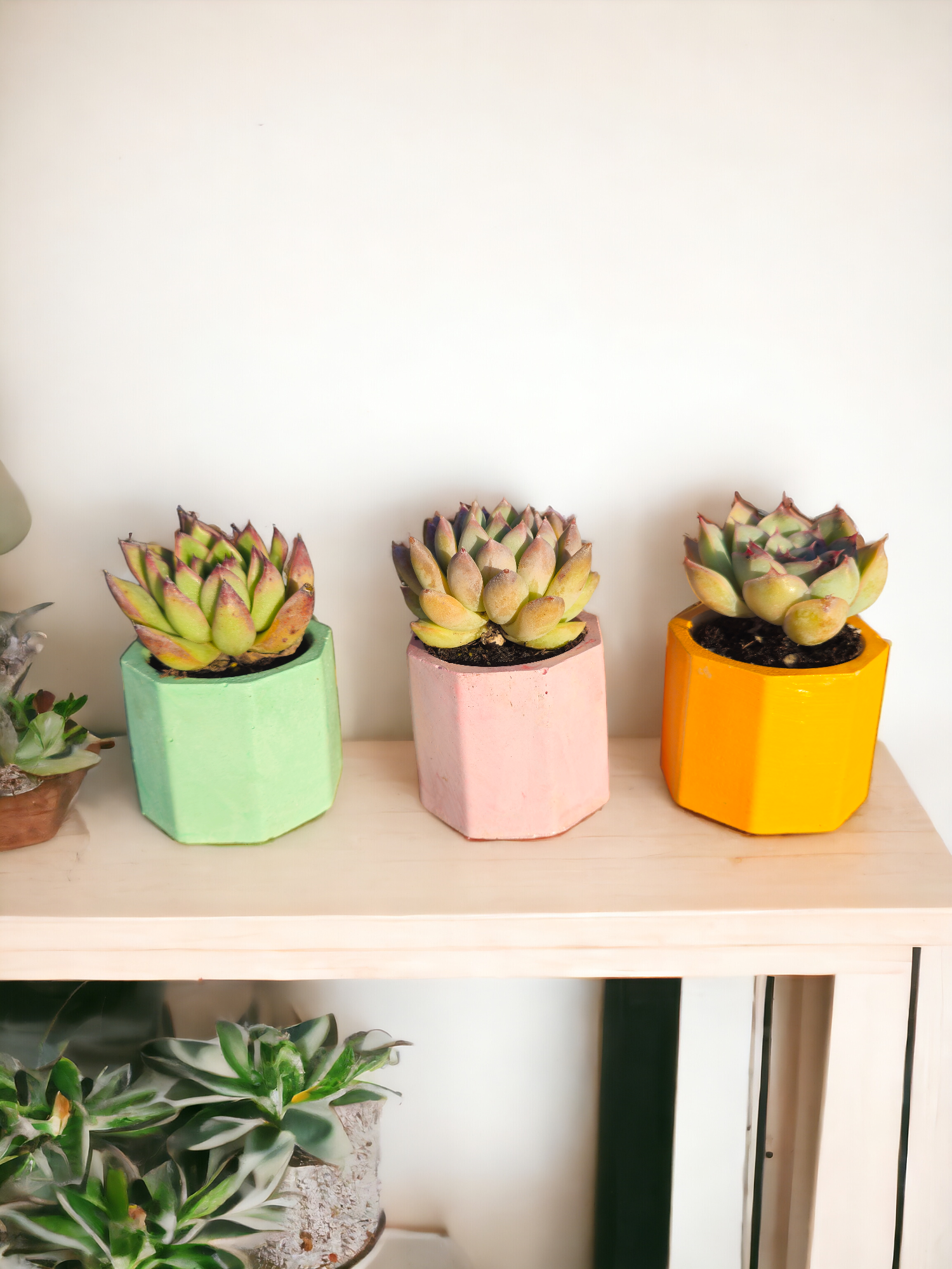 The Pistachio Green Pot offers a fresh and soothing vibe, the Light Pink Pot adds a hint of soft elegance, and the Indian Yellow Pot brings a vibrant burst of warmth. These hand-selected succulents not only thrive with minimal care but also serve as exquisite living decor, turning your home into a sanctuary of natural beauty.